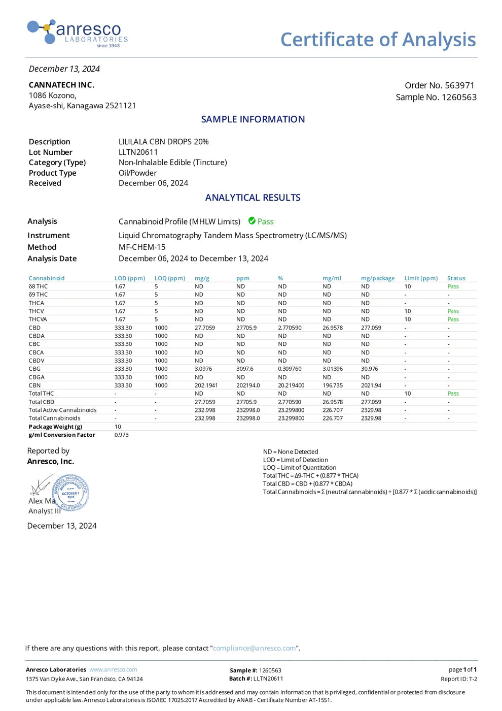 | 商品名 | LILILALA CBNオイル10g CBN2000mg |